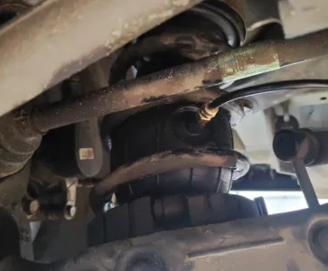Клиент обратился с жалобой на проседание задней части автомобиля после стоянки и периодическое появление ошибки по пневмоподвеске. Кузов заметно «косил» на одну сторону, а компрессор стал срабатывать чаще обычного.